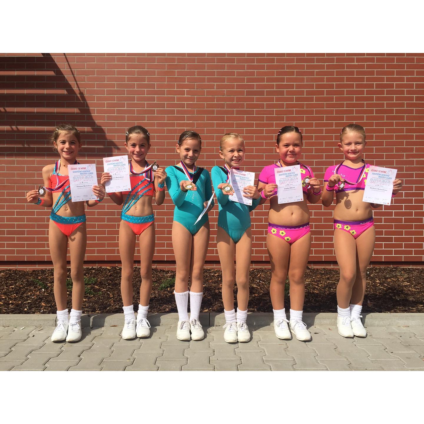 Po dlouhé pauze jsme se konečně dočkaly dalších závodů ČMP ve sportovním aerobiku, kde rovnou všechny naše závodnice získaly cenné kovy. Zlato získala dvojice v kategorii 6-7 let Barunka Maršíková s Nelinkou Růtovou a bronz Emillka Říhová s Barunkou Matouškovou. V kategorii 8-10 let pak ve veliké konkurenci získala dvojčata Simonka a Terezka...